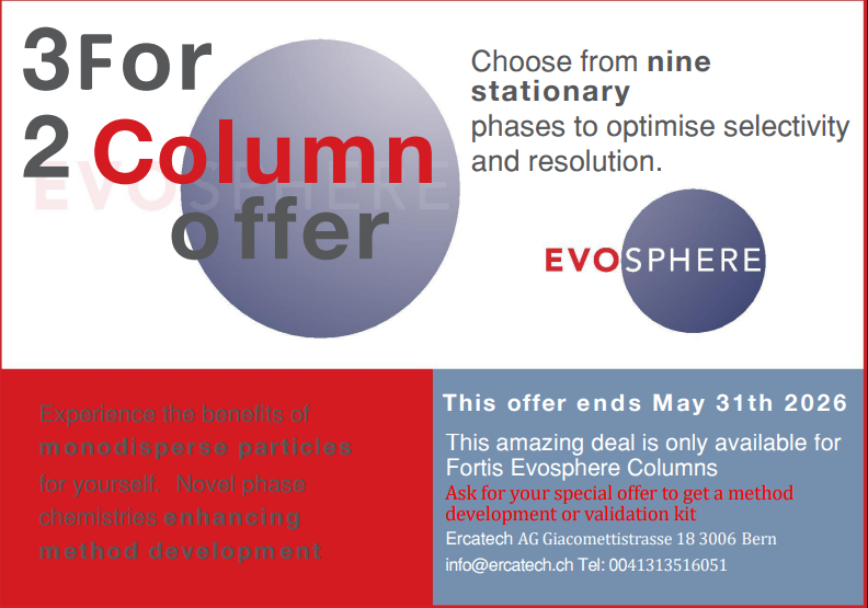 Alle drei Säulen sollten die gleiche Dimension und Partikelgrösse haben, können jedoch mit neun verschiedenen stationären Phasen wie z.B. C18/AR, C18/PFP oder Diphenyl ausgewählt werden.